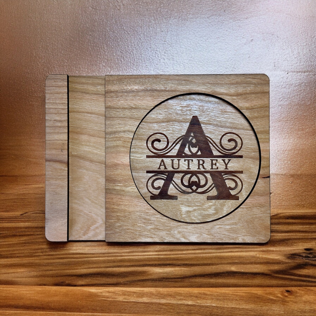 Complete your ‘Man Cave’ with this Cigar & Cocktail coaster custom designed with a monogram. The coaster measures 4.5”x6” with a 3.5” diameter space for a standard cocktail glass. Save when you purchase a set!