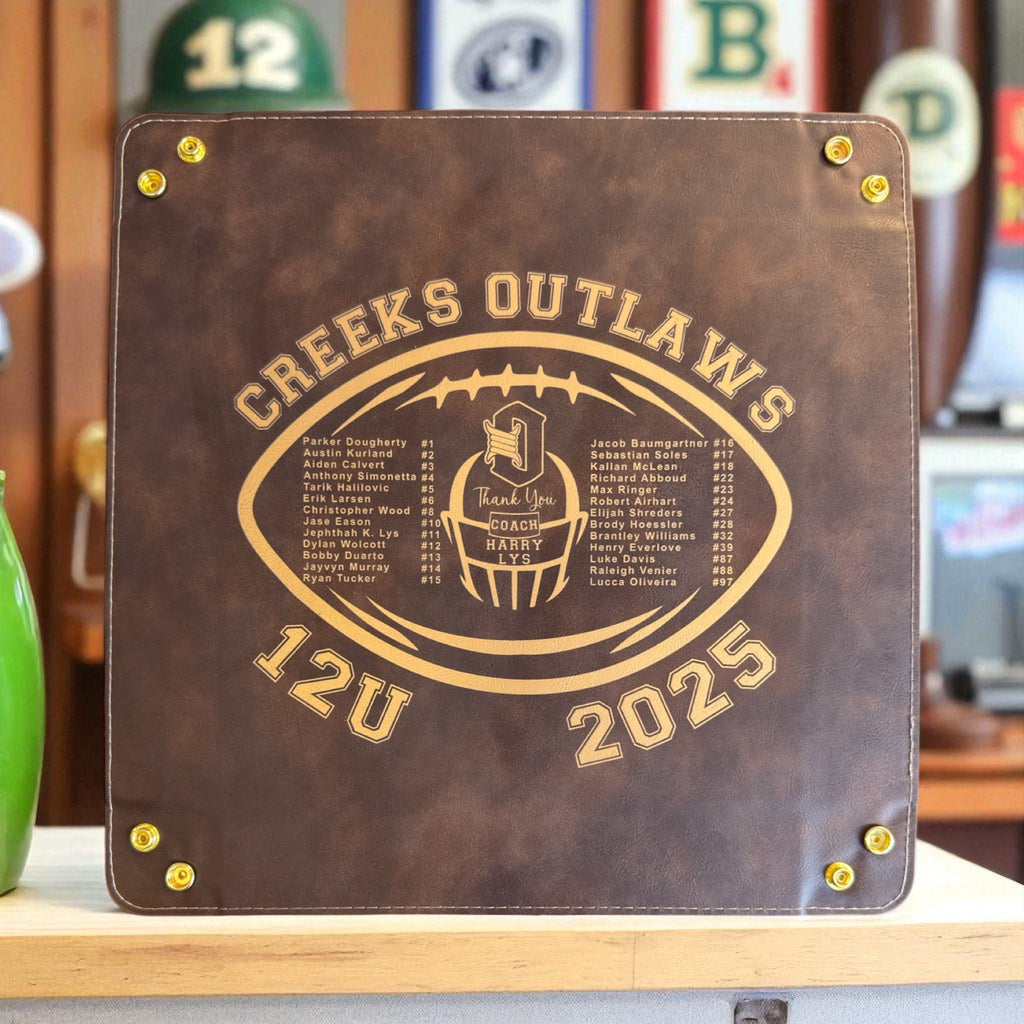 These snap up Catch Trays help consolidate pocket contents at the end of a long day. They come in 6”x6” or 9”x9” sizes and several different colors. Choose yours and let us know what custom engraving you would like. All sides can be engraved.