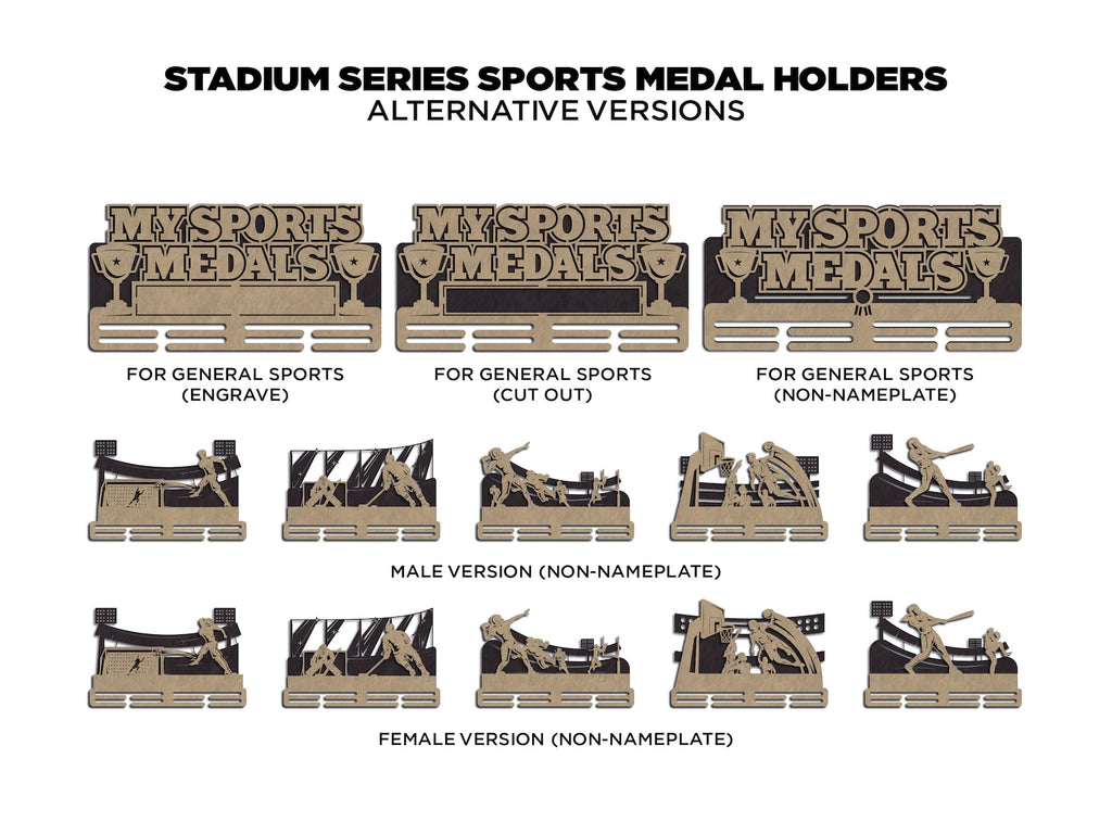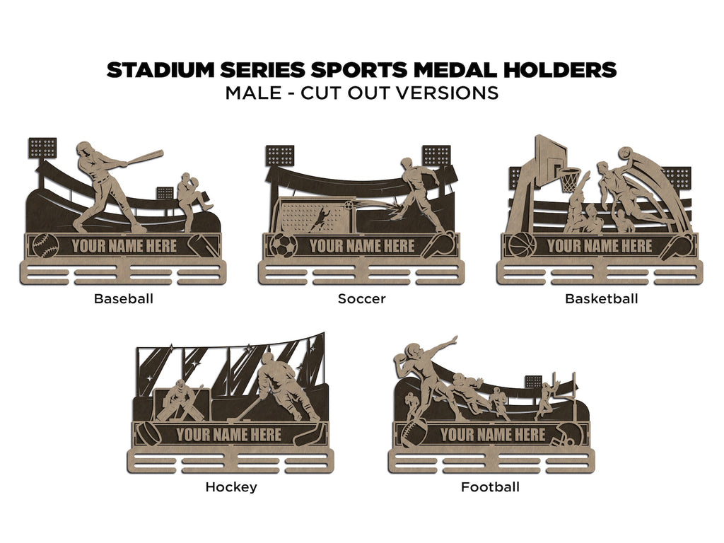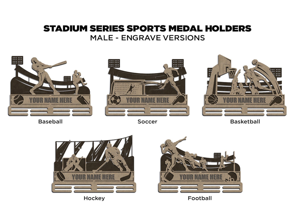 Looking for the ultimate gift for an athlete or sports enthusiast. The Stadium Series Medal Holder Collection feature a number of customizable Medal Holders across a variety of popular sports. Choose from a male or female background and customize the Medal Holder with a last name and number. We are able to match the team colors of your choice to make this a one of a kind gift or team giveaway. THANK YOU for your interest, we would love to hear from you.