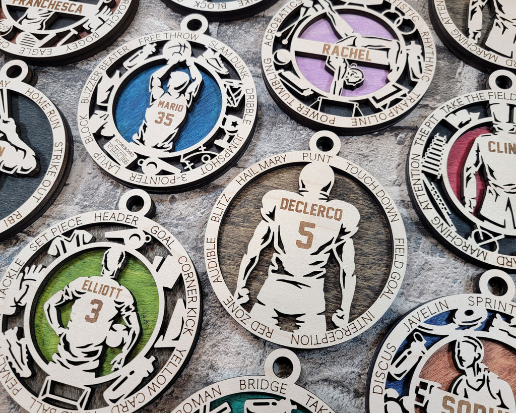 Longleaf Laser Designs has your athletes covered. We love to customize these memories this time of year. The kids just love them. They measure approximately 3 inches wide and can also feature colors similar to their school colors. View our