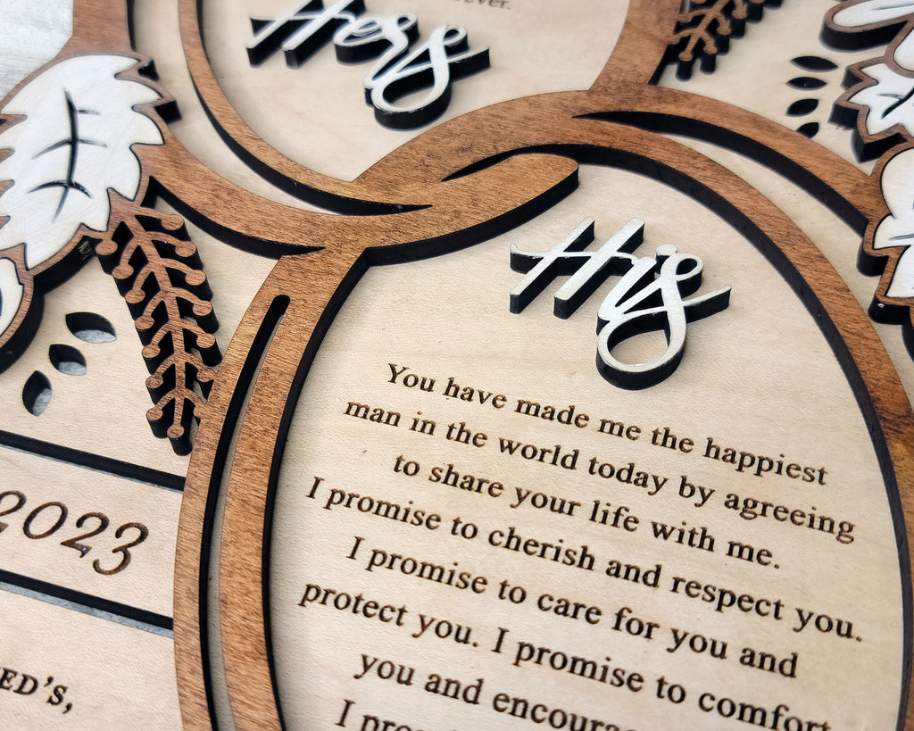 Wedding vows are your sacred promise to your partner and are often original but always special. Why not display this wonderful piece in your home as a reminder of our vows? Contact us for all custom work and we will get it right!